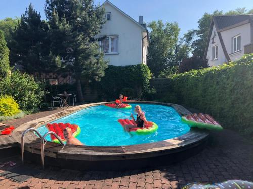 El establecimiento Palangos Saulegraza ofrece alojamiento independiente en casas de campo, situadas en una zona tranquila de Palanga, a 800 metros del mar. Hay conexión WiFi gratuita. Las casas de campo del establecimiento Palangos Saulegraza están amuebladas con sencillez en tonos claros y disponen de escaleras de madera y detalles de madera. También incluyen baño con ducha y calefacción radiante. El Palangos Saulegraza cuenta con una piscina cubierta en el patio trasero, una sala de baños con sauna y una sala con mesa de billar. También hay zona de barbacoa. El establecimiento se encuentra a 300 metros del centro de Palanga y a 100 metros del supermercado Maxima. El aeropuerto de Palanga se halla a 7,5 km.